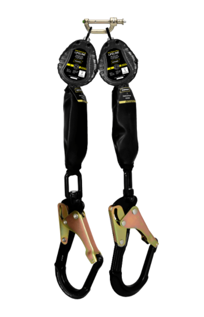 • 6 ft webbing dual SRL with 360° fully rotating aluminum rebar hooks that have a 3,600 lb gate strength